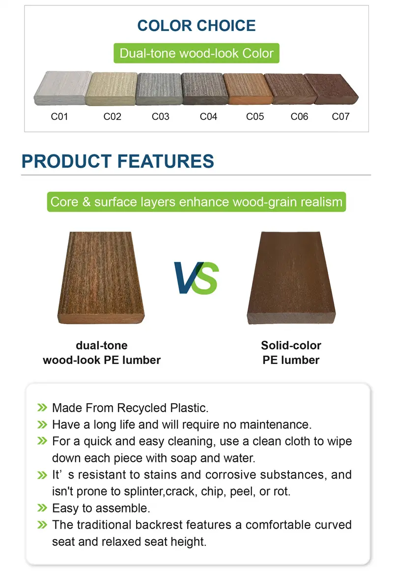 It’s resistant to stains and corrosive substances, and isn’t prone to splinter,crack,chip, peel, or rot.